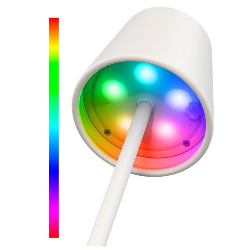 Skab den perfekte stemning hvor som helst med den trådløse RGBW LED-bordlampe. Den er designet i minimalistisk skandinavisk stil og fremstillet af massivt metal, hvilket giver den et eksklusivt look i stuer, soveværelser, kontorer og restauranter - og den er lige så imponerende udendørs til havefester. Med touch-kontrol kan du tænde/slukke, vælge mellem adskillige RGBW-farver eller varm hvid 3000 K og nyde uendelig dæmpning med et langt tryk. Et indbygget genopladeligt 18650 Li-ion-batteri gør den ledningsfri og giver op til 6 timers fuld lysstyrke og op til 20 timers lav lysstyrke. Takket være IP44-stænksikring passer den perfekt til terrasser, altaner og overdækkede udendørs siddeområder.
