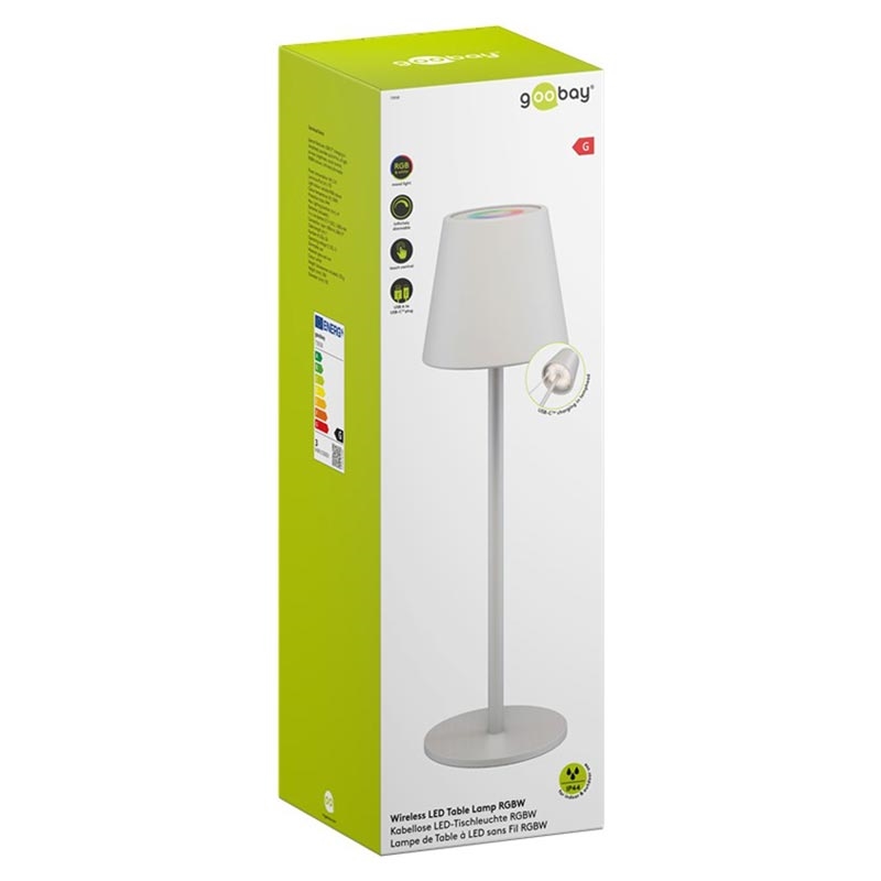 Goobay trådløs LED-bordlampe RGBW - berøringsbetjening, varm hvid 3000 K + RGB-farver, trinløs dæmpning, USB-C-genopladelig, IP44
