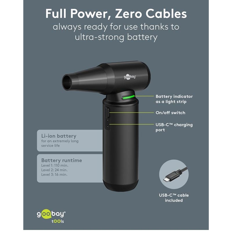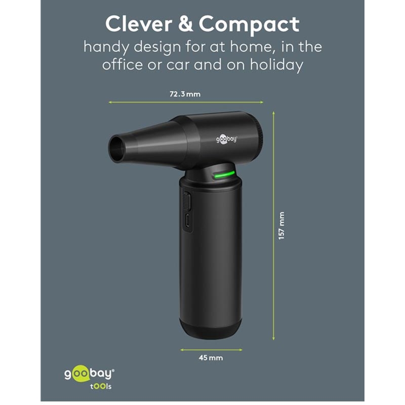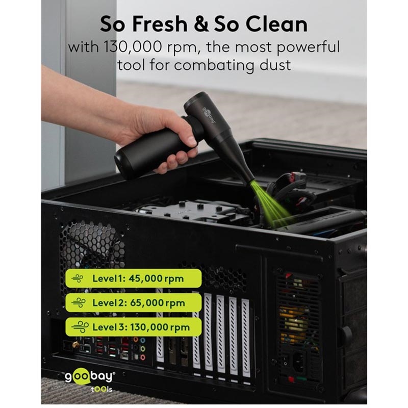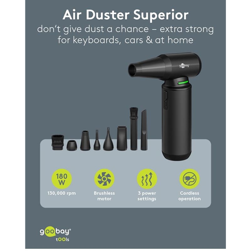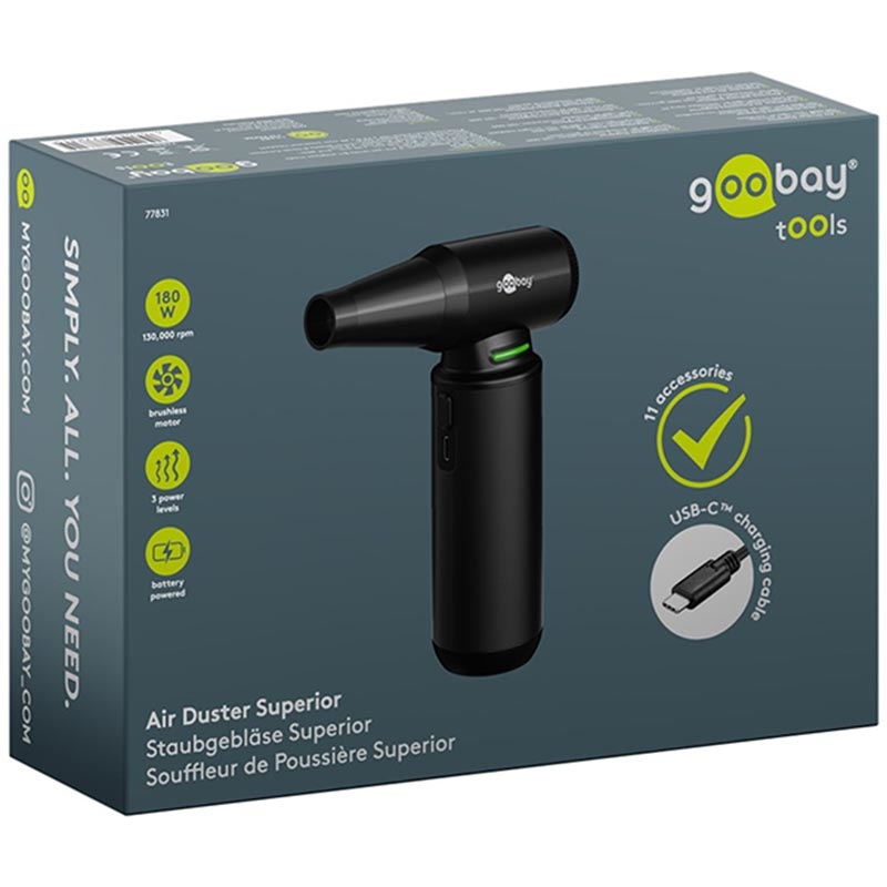 Goobay luftstøvsuger Superior - 130000 o/min trådløs elektrisk luftblæser med 8 dyser og 3 børster (180 W, aluminiumsdesign)