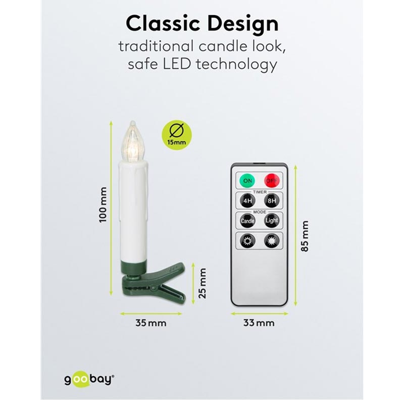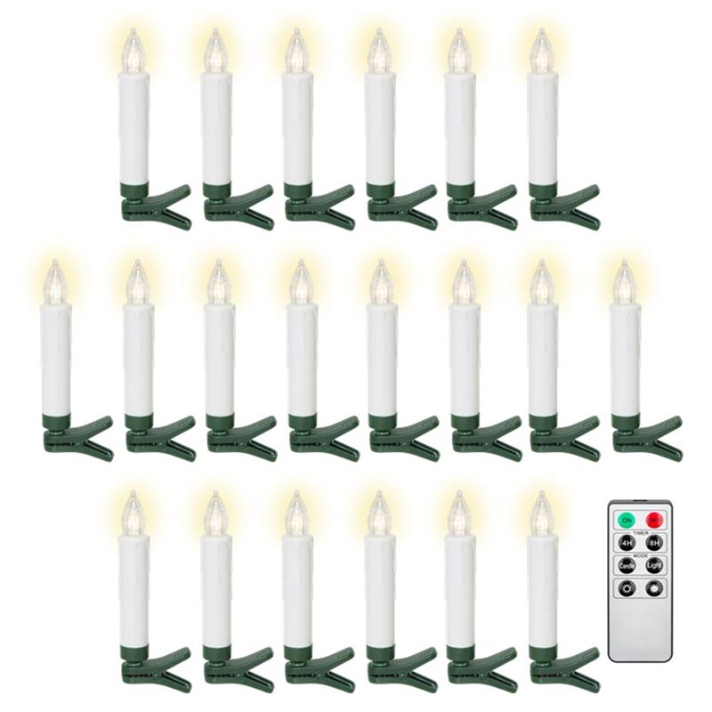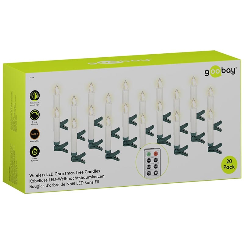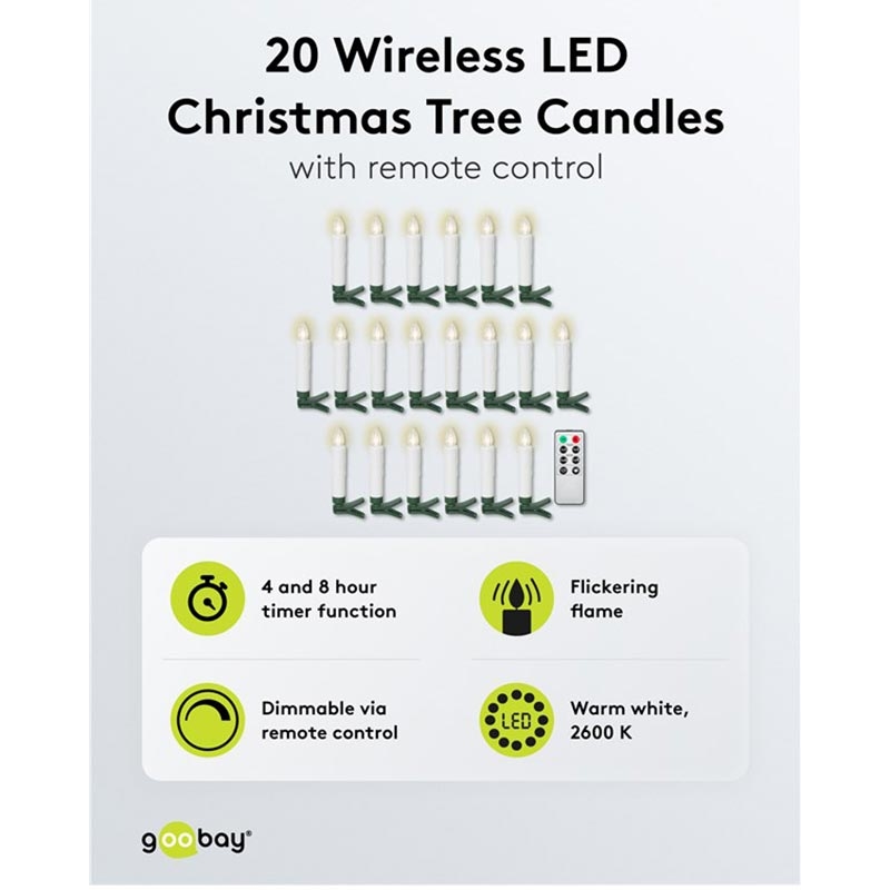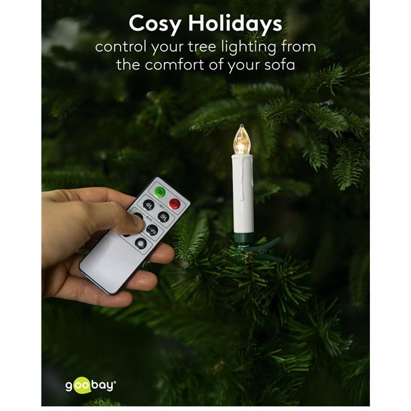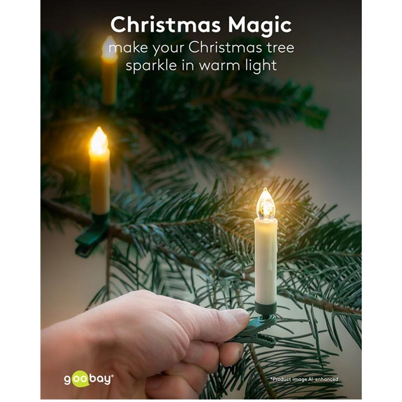 Goobay trådløst LED-juletræslyssæt - 20 dæmpbare lys med clips, fjernbetjening og timer (2600 K)