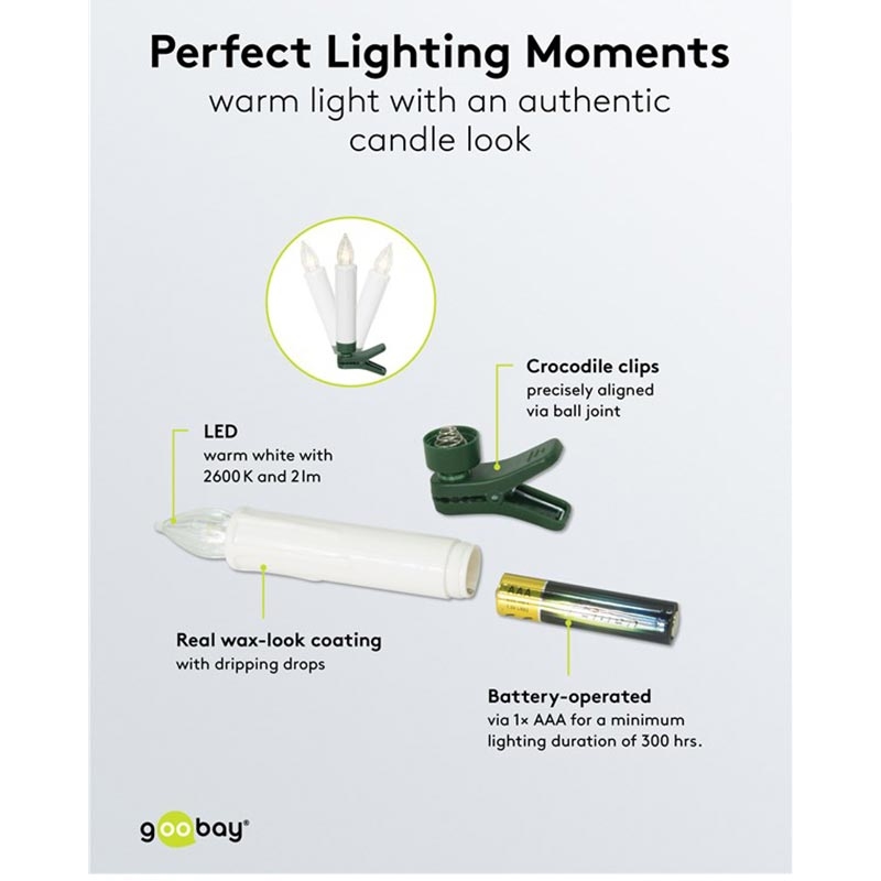 Goobay trådløse LED-juletræslys - 20 stk. - Varm hvid