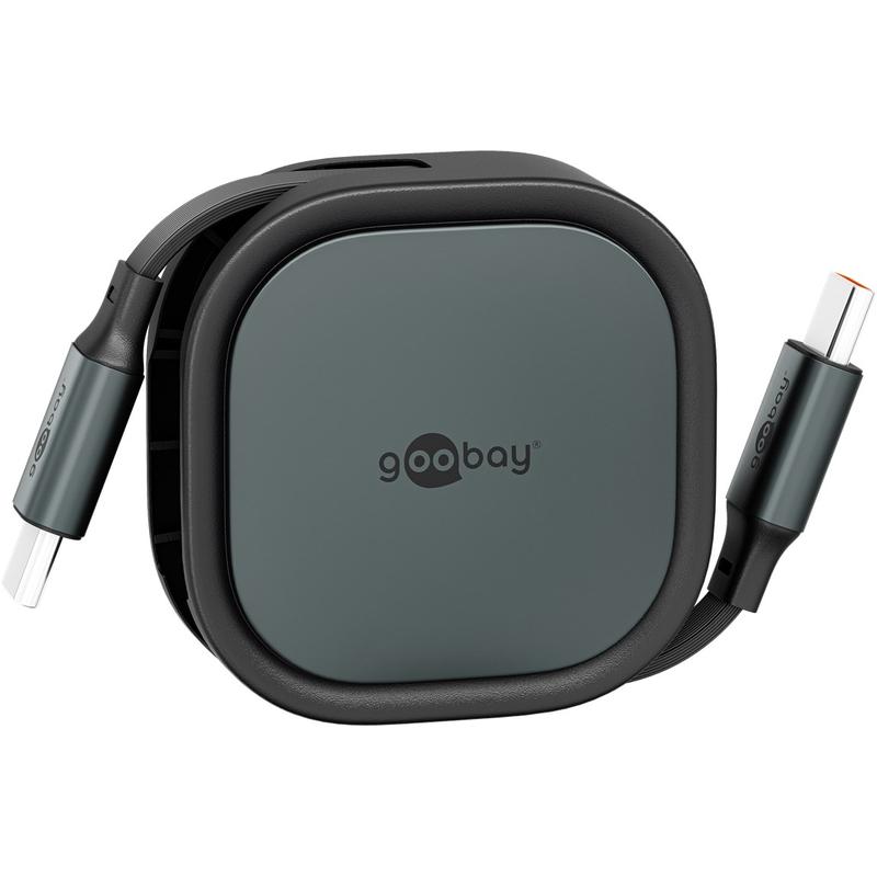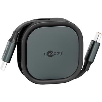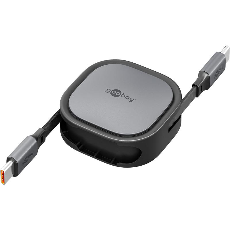 Goobay indtrækkeligt USB-C-kabel - 1m fladt opladningskabel med 15W effekt og automatisk indtrækningsmekanisme