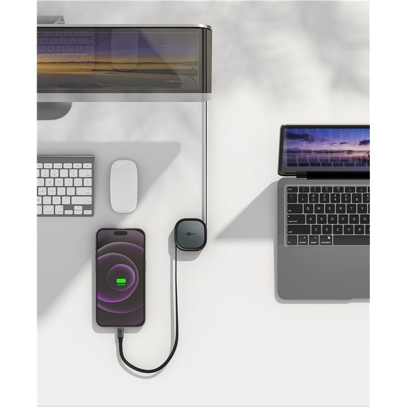 Dette smarte indtrækkelige kabel er både praktisk og beskyttende. Det eliminerer sammenfiltring, sparer plads og reducerer slitage - hvilket gør det til en smart investering for alle, der rejser ofte eller ønsker at holde deres tekniske opsætning pæn.