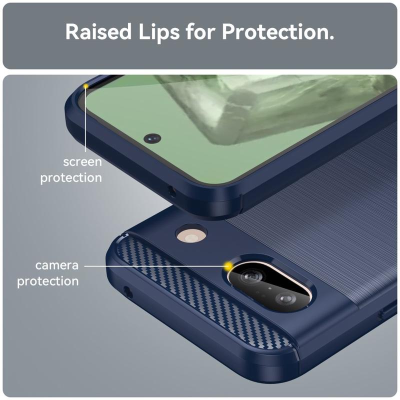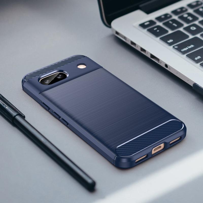 Google Pixel 8a Børstet TPU Cover - Karbonfiber - Blå