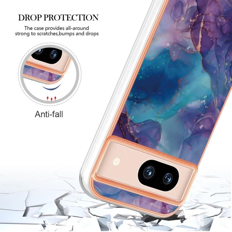 Google Pixel 8a Marmormønster Galvaniseret IMD TPU Cover - Lilla