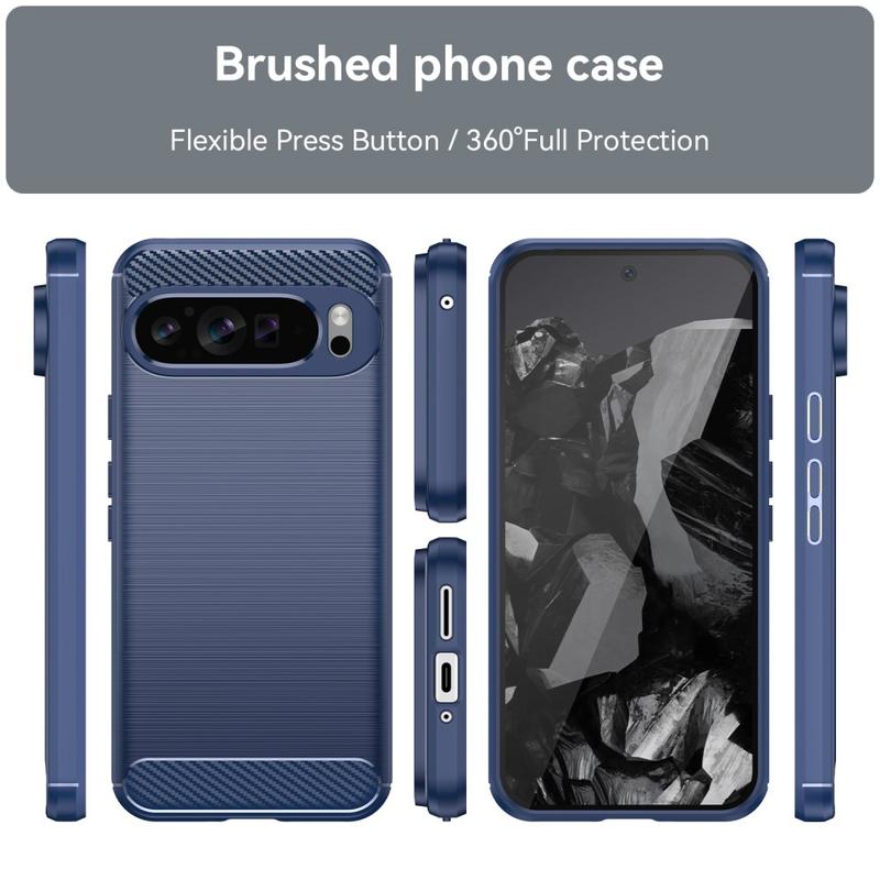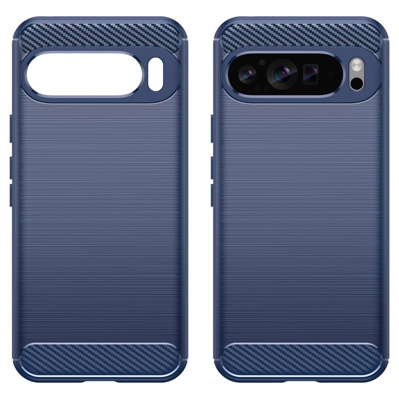Google Pixel 9 Pro XL Børstet TPU Cover - Karbonfiber - Blå