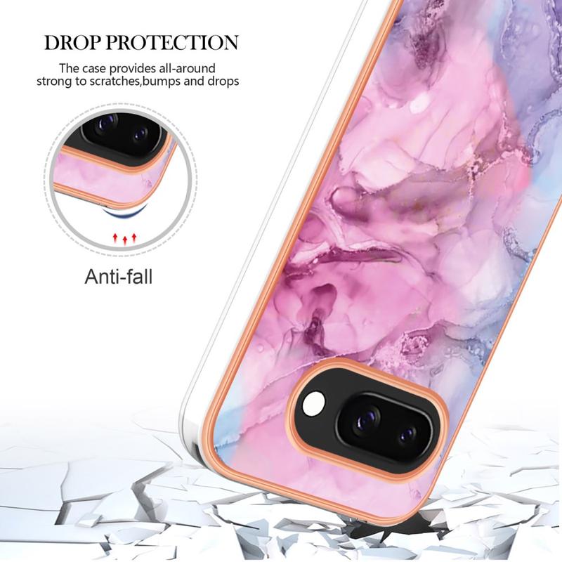 Google Pixel 9a Marmormønster Galvaniseret IMD TPU Cover - Lilla / Blå