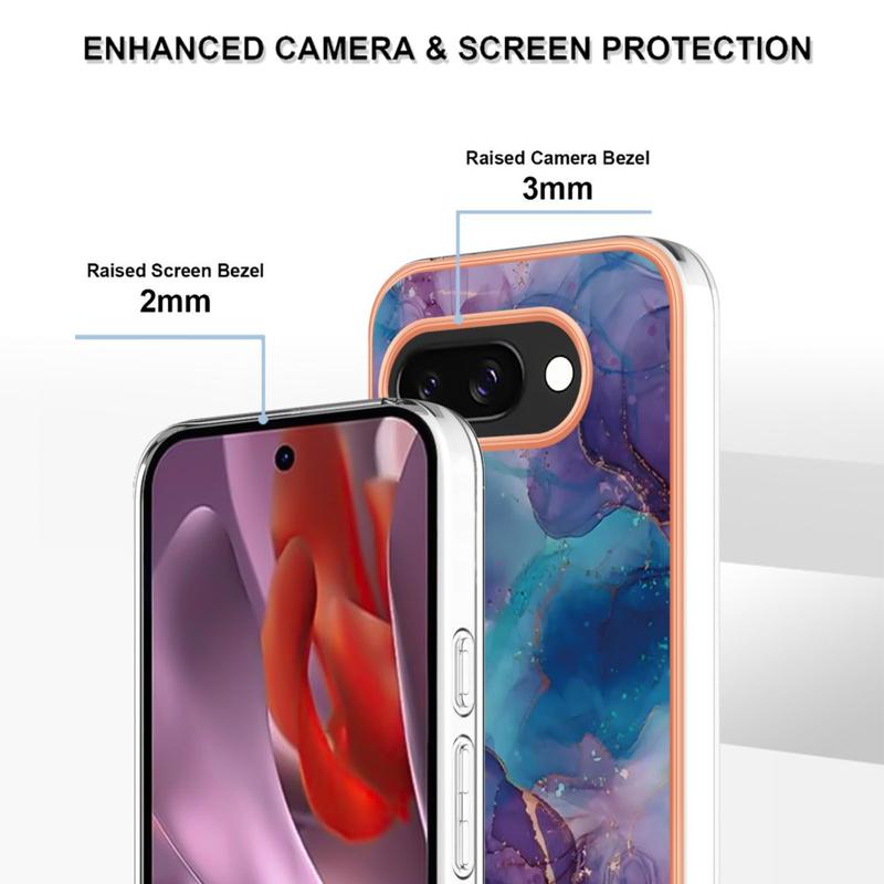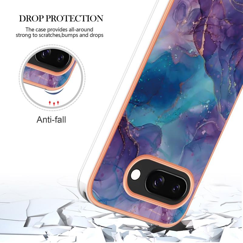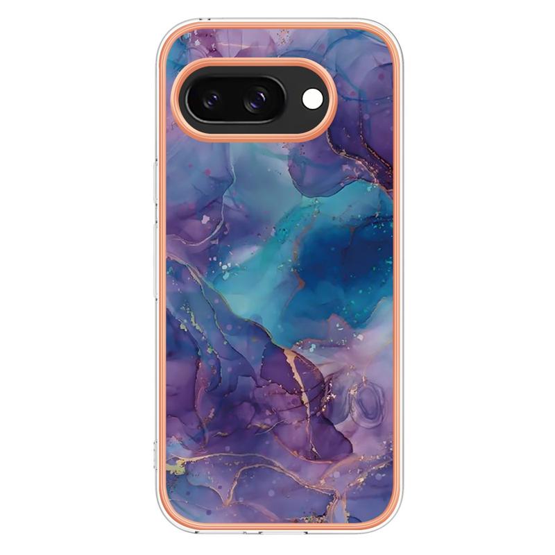 Google Pixel 9a Marmormønster Galvaniseret IMD TPU Cover - Lilla / Blå