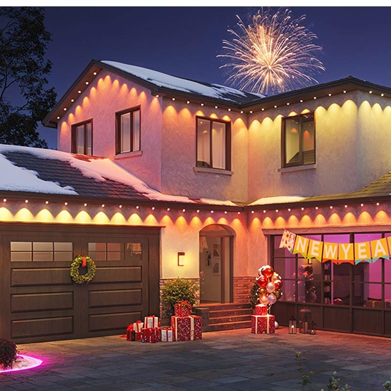 Forvandl dit hjem udvendigt med Govee Permanent Outdoor Lights 2, et førsteklasses smart belysningssystem designet til dekoration og atmosfære året rundt. Med 16 millioner farver, 100 dynamiske scenetilstande og lyse 40 lm hvide LED'er skaber dette sæt levende belysning til enhver lejlighed - Valentinsdag, jul, Halloween, fester eller hverdagsaftener på terrassen. Den forbedrede RGBICW-teknologi sikrer glatte, ensartede farveovergange uden flimmer eller lilla farvetone, mens den holdbare IP67-lyskrop og anti-UV-materialer modstår hårdt vejr fra sommervarme til vinterfrost. Uanset om det er parret med Govee Home-appen, stemmeassistenter eller AI-genererede lysshows, tilbyder systemet komplet tilpasning til ubesværet udendørs glans.