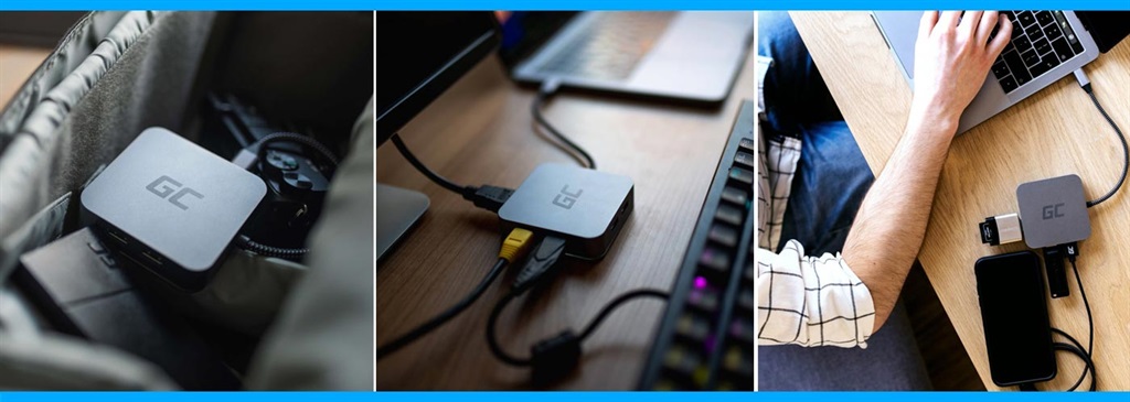Denne multiport hub adapter forvandler din USB-C port til seks praktiske input, hvilket giver forskellige muligheder for lynhurtig dataoverførsel samt superhurtig opladning. Den er udstyret med den avancerede Quick Charge 4.0 og PD (Power Delivery) hurtige opladningsteknologier, og Green Cell hub'en leverer den hurtigste opladningshastighed på markedet til alle USB-C enheder. Og ikke blot det, for denne adapter erstatter Samsung Dex og Huawei MateDock stationen og giver en PC-oplevelse via din smartphone* (strømforsyning nødvendig).