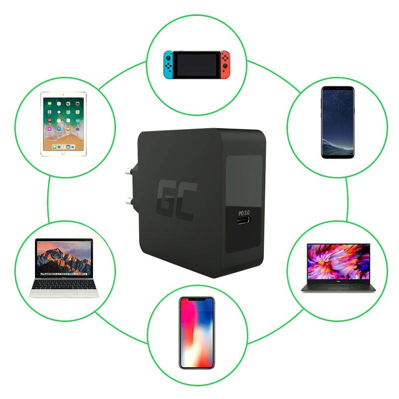 - Førsteklasses hurtig oplader til notebooks, tablets og smartphones designet af Green Cell