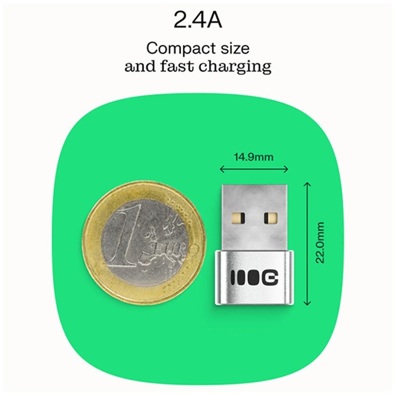 - Effektiv opladningsydelse - Leverer 2.4A/12W output, hvilket sikrer stabil og hurtig opladning af kompatible USB-C-enheder.