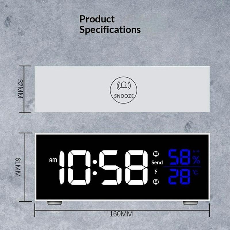 GS-8812 multifunktionsmusikvækkeuret kombinerer et elegant LED-display i spejlstil med praktiske hverdagsfunktioner som dobbeltalarm, justerbar lysstyrke og lydstyrke samt overvågning af indendørstemperatur og luftfugtighed i realtid. Det er designet til soveværelser, kontorer og studenterværelser og tilbyder 16 musikalske ringetoner for en mere behagelig vågnen, stemmestyring for nem betjening og en lydløs smart chip, der fjerner irriterende tikken. Med et indbygget 2200 mAh genopladeligt batteri og hukommelsesfunktion er det pålideligt både når det er tilsluttet strøm og når du er på farten.