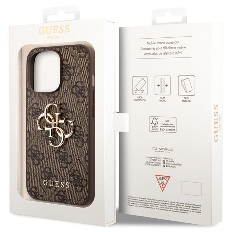 Guess 4G Big Metal Logo iPhone 14 Pro Hybrid Cover - Brun