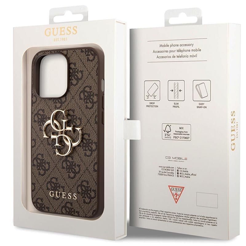 Guess 4G Big Metal Logo iPhone 14 Pro Max Hybrid Cover - Brun
