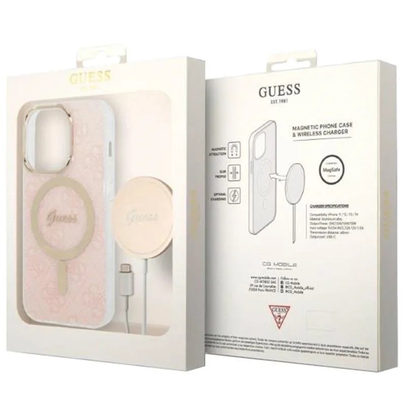 Guess 4G Edition Bundle Pack iPhone 14 Pro Cover & Trådløs Oplader - Pink