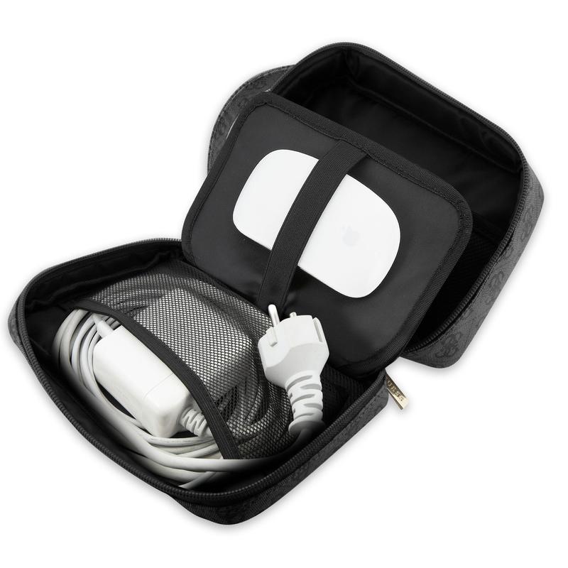 Guess Travel Universal-tasken er den ideelle rejsekammerat for alle, der leder efter en stilfuld og praktisk måde at bære alt deres tilbehør til telefon, tablet eller laptop på. Tasken er lavet af ECO-læder i høj kvalitet og har en fint struktureret overflade prydet med det ikoniske Guess-logo. Indvendigt giver de veludformede lommer rigelig plads til opladere, powerbanks og strømkabler. Det mest iøjnefaldende ved denne taske er USB-A-udgangen, så du kan tilslutte en powerbank og oplade din telefon direkte fra siden af tasken. Med et rent design og en sans for stil er denne taske perfekt til rejsende, der sætter pris på funktionalitet og mode.