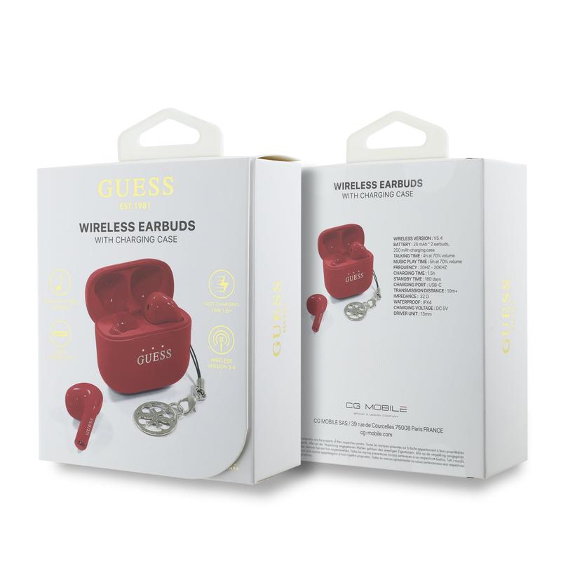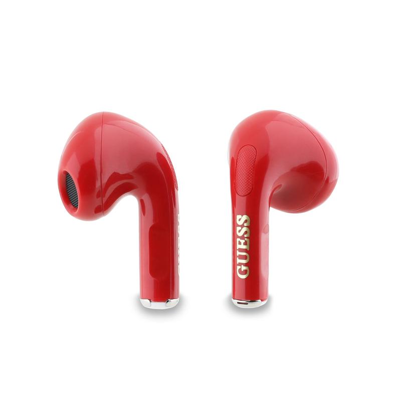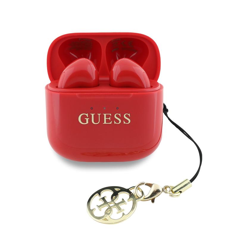 Guess Charm True Wireless øretelefoner med blank effekt og klassisk logoprint - Rød