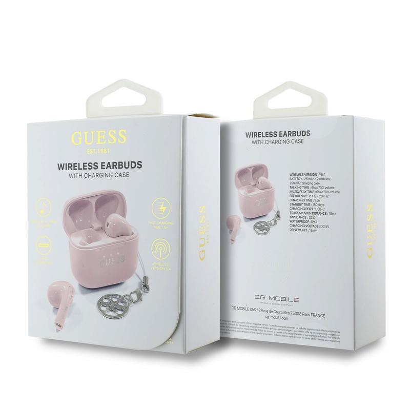 Guess Charm True Wireless øretelefoner med blank effekt og klassisk logoprint - Pink