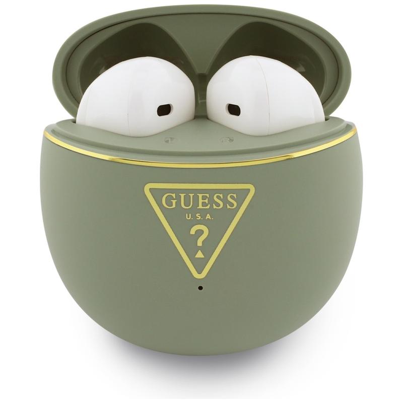 - Ægte trådløst in-ear-design med et eksklusivt Guess Gold Line Triangle-look