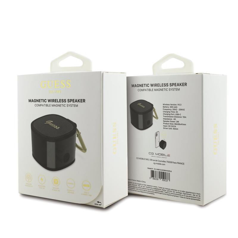 Guess magnetisk Bluetooth-højttaler - MagSafe-kompatibel kompakt 3W trådløs højttaler med karabinhage, Bluetooth 5.3, USB-C-opladning