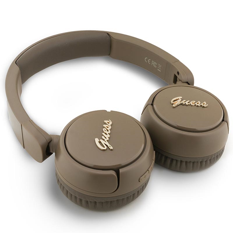 Guess Metal Logo Script Bluetooth 5.3 On-Ear-hovedtelefoner - 30 timers spilletid, hurtig USB-C-opladning, IPX4 sved- og stænktæt