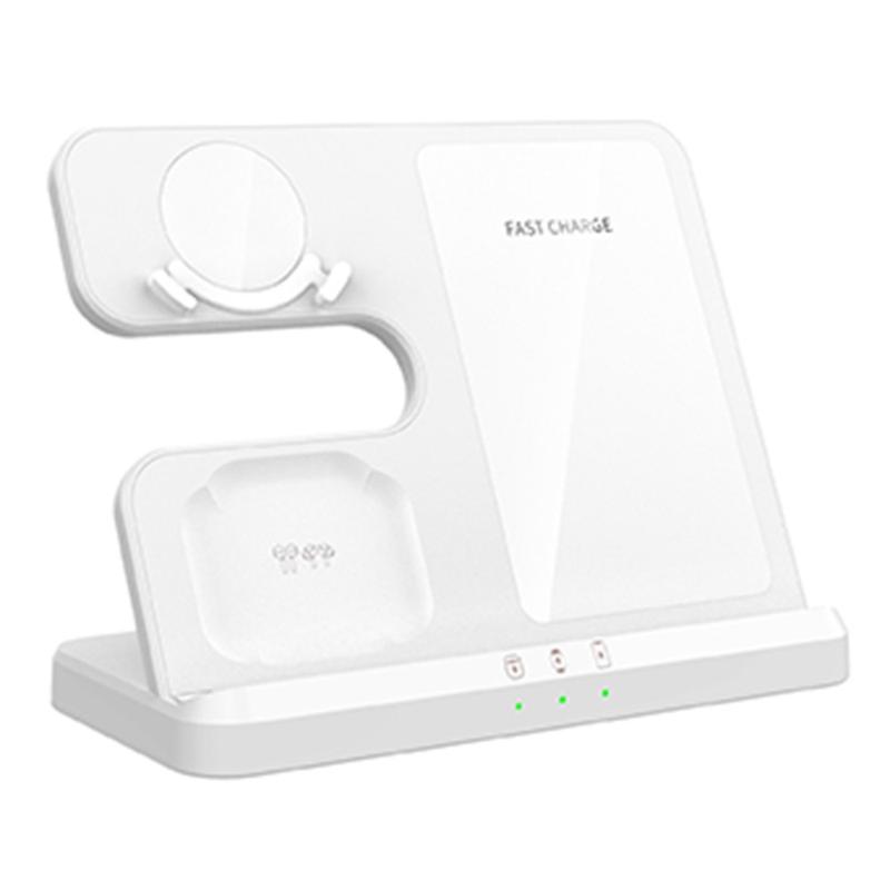 GY-Q10B 3-i-1 hurtigoplader trådløs opladestation til Qi-standardtelefoner / Samsung Galaxy Watch / høretelefoner - hvid