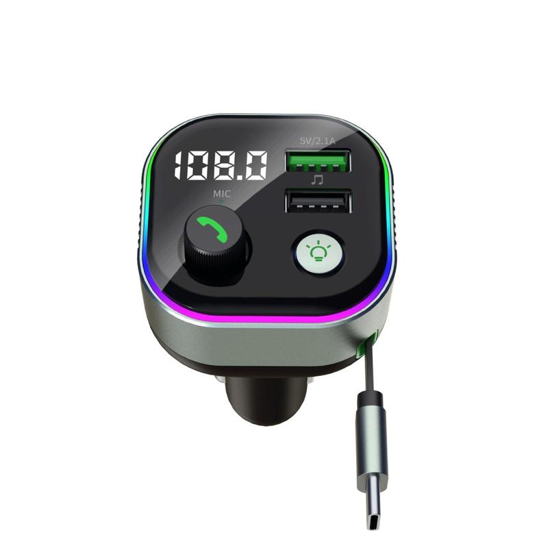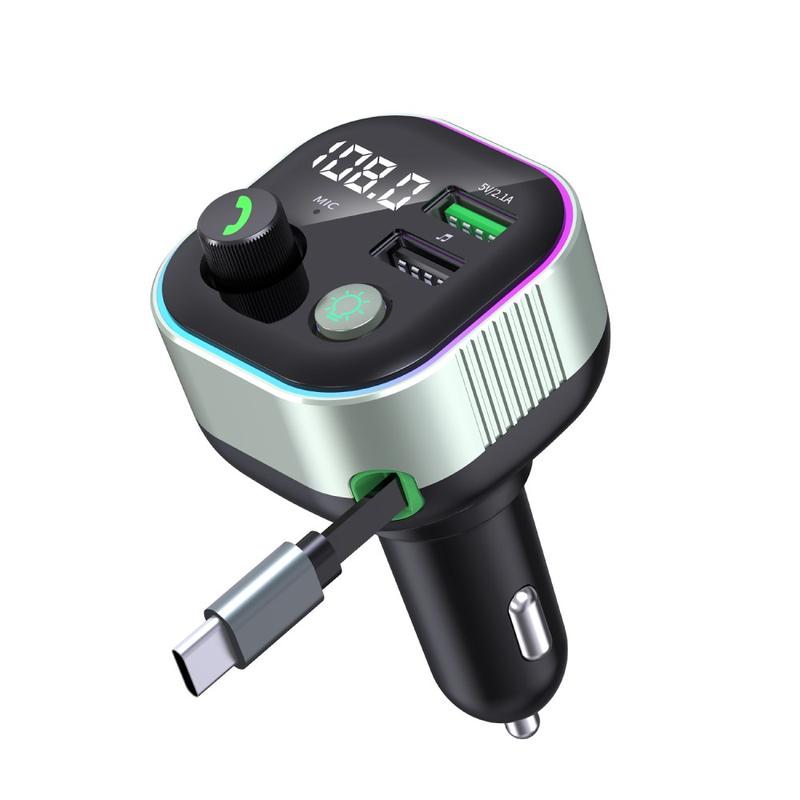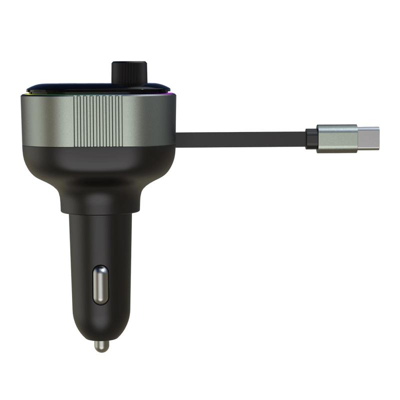 GZ11 65W PD hurtigopladende billader med udtrækkeligt Type-C-kabel, Bluetooth-sender, omgivelsesbelysning