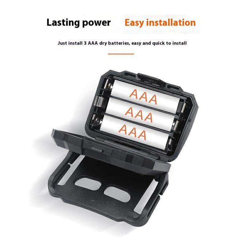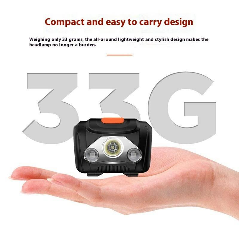 Med dimensioner på 60 × 45 × 32 mm er pandelampen lille, let og nem at bære. Den sidder behageligt på hovedet uden at genere, hvilket gør den velegnet til lang tids brug under udendørs aktiviteter.