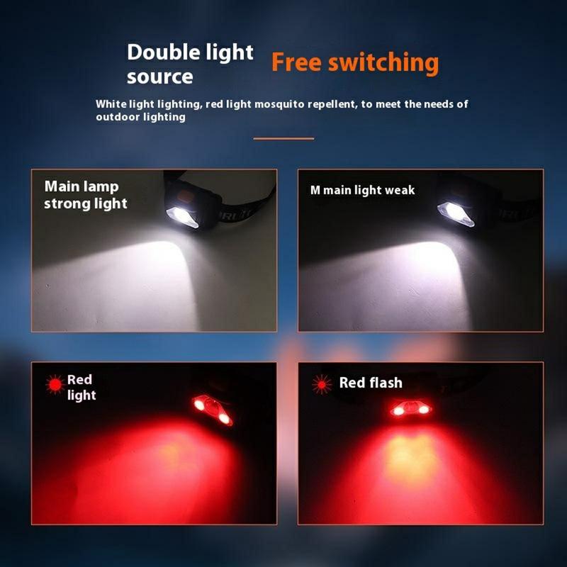 H09 LED-pandelampe 3W med 4 lystilstande, rødt lys, IPX4-beskyttelse
