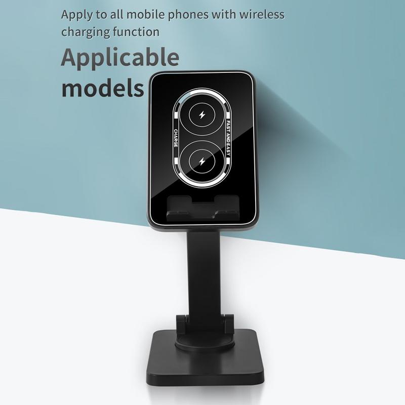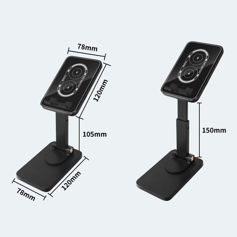 H12 15W trådløs oplader Foldbar telefonholder til skrivebordet Bærbart opladningsstativ til live-streaming på skrivebordet