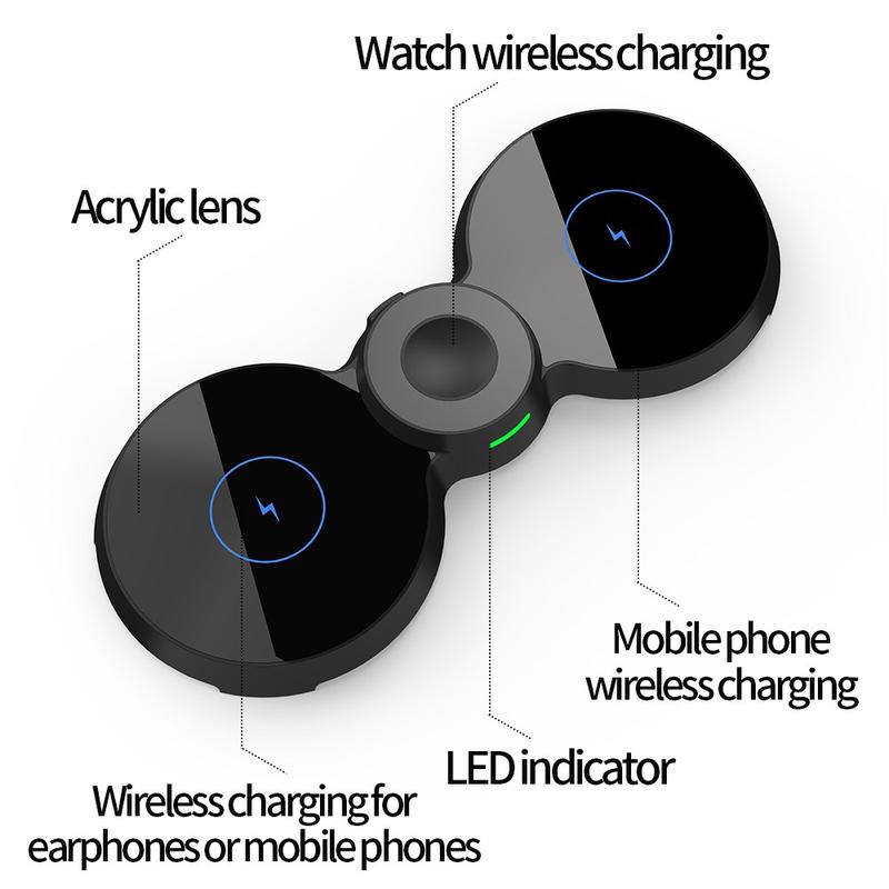 - 3-i-1 design: Oplad din smartphone, smartwatch og høretelefoner på én gang.