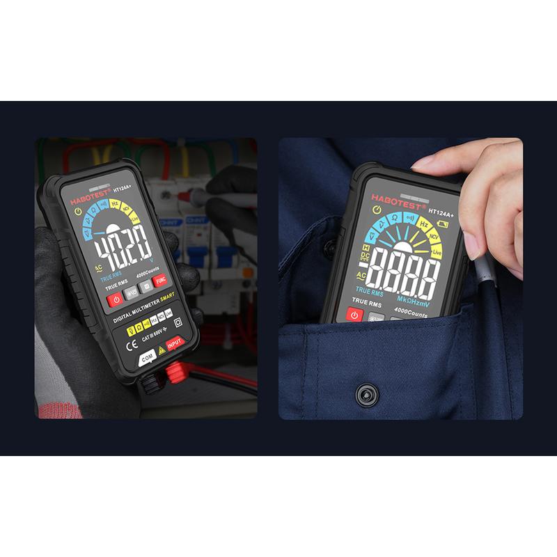 Hvis du investerer i Habotest HT124A+, får du et pålideligt alt-i-et-multimeter, der er nemt at håndtere og bære, og som kun vejer ca. 0,125 kg med dimensioner på ca. 130 × 70 × 23 mm. Dets robuste funktionssæt - inklusive True RMS, datalagring og automatisk nedlukning - gør enhver testproces enklere og mere sikker, samtidig med at det opfylder EN61010-1, CAT III 600 V sikkerhedsstandarder.
