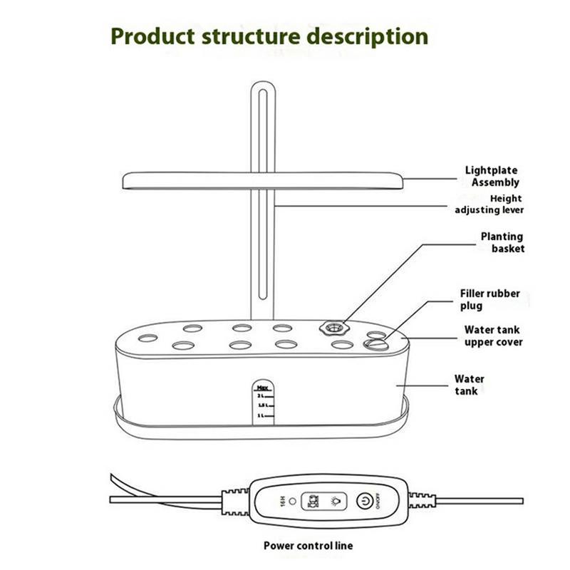 - Miljøvenligt design: Denne hydroponiske plantekasse er fremstillet af holdbar ABS-plast og aluminiumslegering og er både stilfuld og langtidsholdbar.