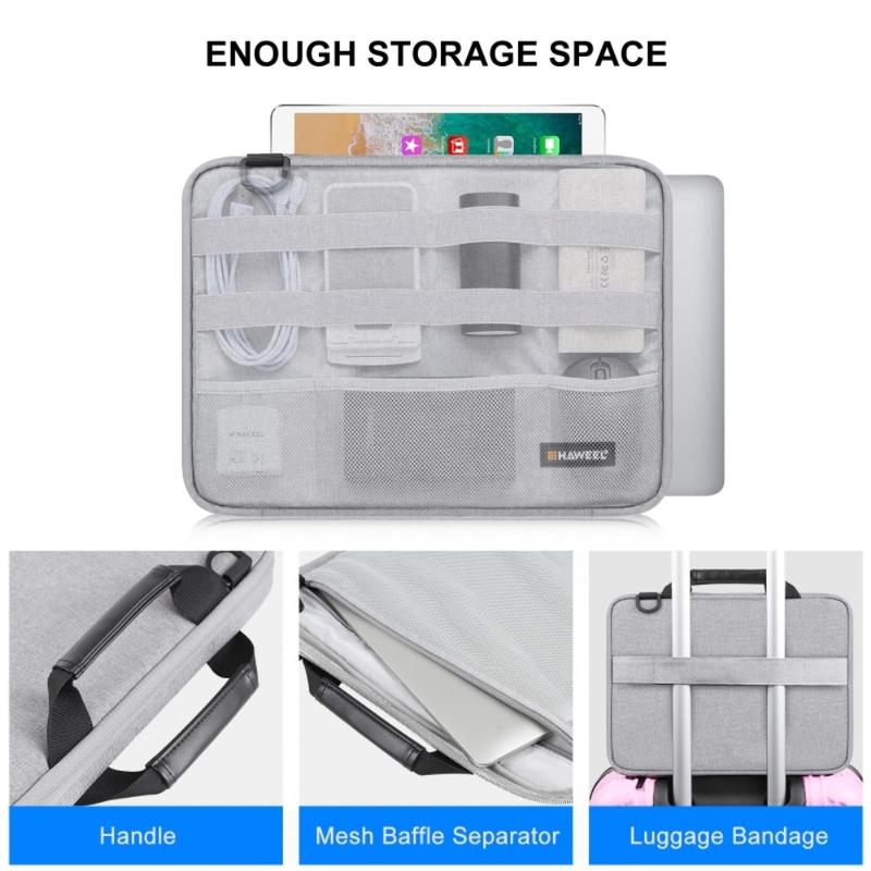 Transportér din bærbare computer sikkert og rejse smartere med HAWEEL HWL2168 MacBook-tasken. Denne slanke beskyttelseslomme er designet til 14-15 tommer bærbare computere og kombinerer flerlags polstring med et praktisk tilbehørsrum, så du kan opbevare dine vigtige ting samlet ét sted. Det vandtætte polyesteryderside beskytter mod regn og spild, mens det bløde inderfor reducerer risikoen for ridser under daglig pendling, brug på kontoret og rejser.