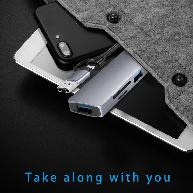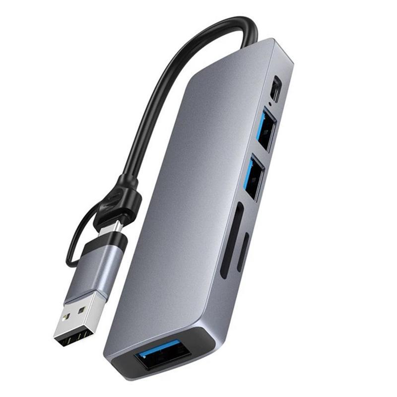 HC-13FL USB-C/USB-A-multiporthub med 1 USB 3.0-port, 2 USB 2.0-porte, SD/TF-kortlæser og USB-C-opladningsport