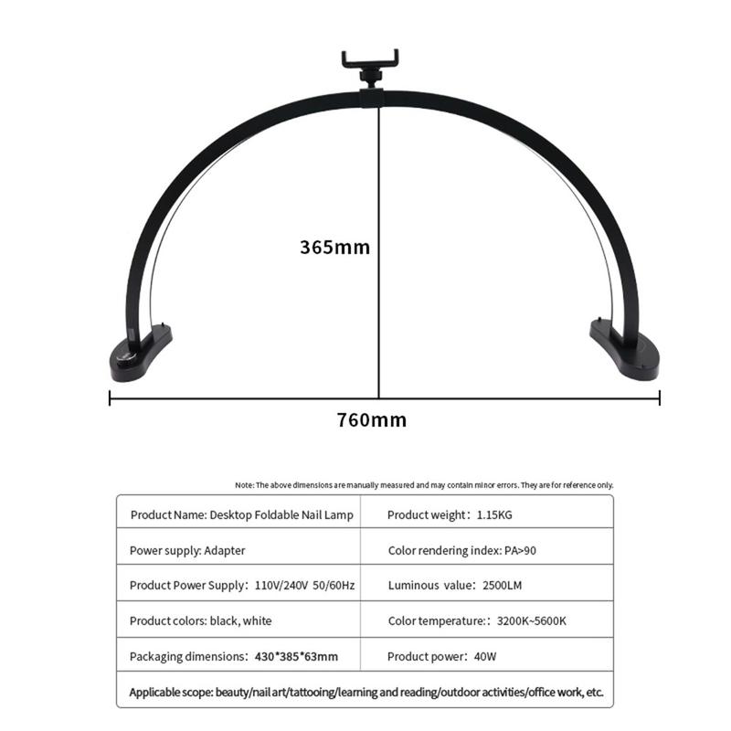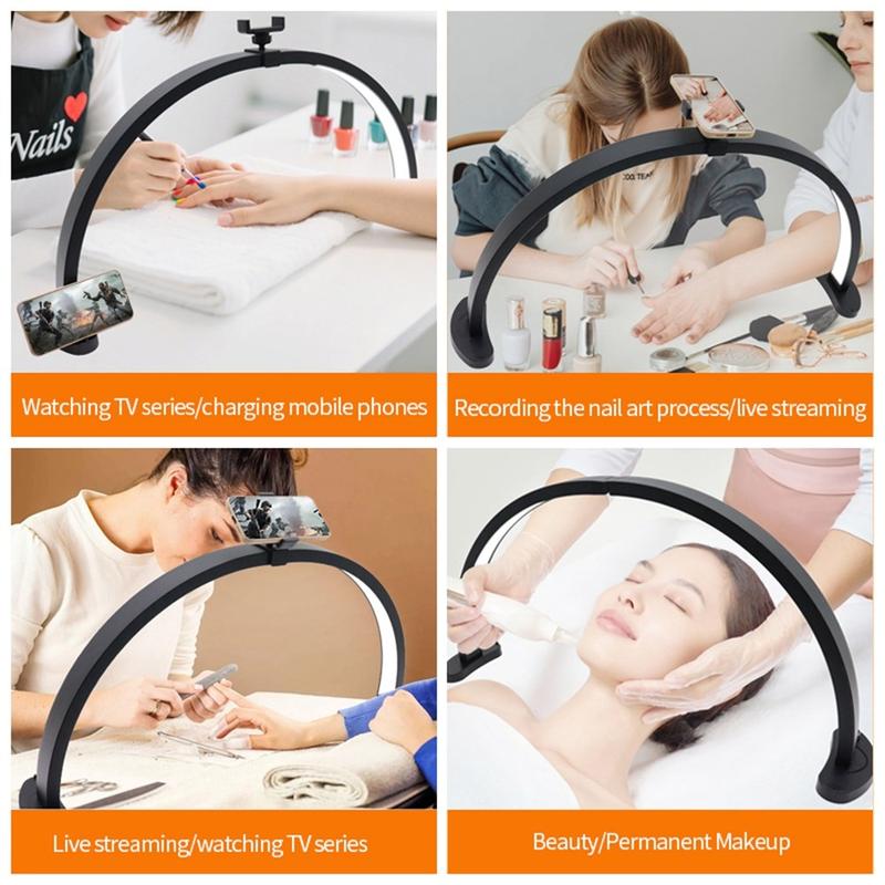 Skab rent, flatterende lys til præcisionsarbejde med HD-M11X 28" U-formet skyggeløst LED-fyldningslys. Dens halvcirkelformede design hjælper med at reducere hårde skygger, hvilket gør den ideel til skønhedsbehandlinger, neglekunst, tatoveringsarbejde, oprettelse af indhold og detaljerede skrivebordsopgaver. Med 280 dobbeltfarvede LED'er kan du skifte mellem varme og kølige toner og finjustere stemningen fra 3200K til 5600K. En høj CRI >90 hjælper farverne med at se naturlige og præcise ud - især nyttigt, når du skal matche makeuptoner, vælge neglefarver eller arbejde med hudtoner. Lampen leverer op til 2500 lm lysstyrke ved 40 W og inkluderer bordbeslag samt et tilbehørssæt med telefonholder til en ryddelig arbejdsstation.