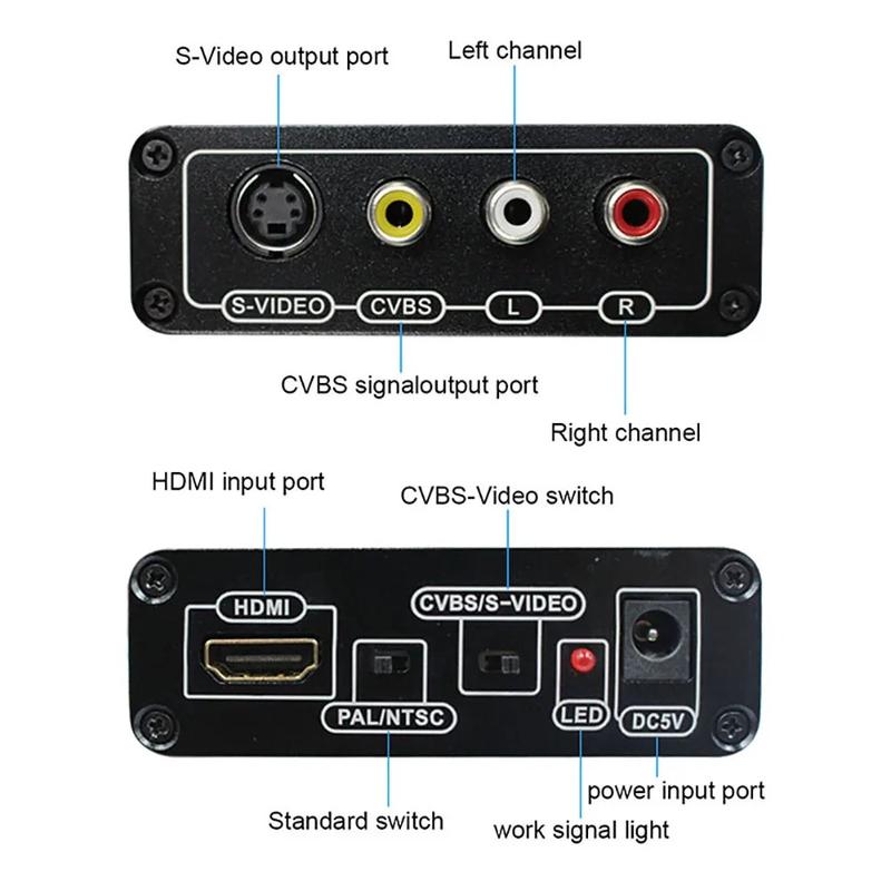 Denne HDMI til AV/S-Video-konverter er en praktisk løsning til at forlænge levetiden på ældre tv'er og skærme, da den tilbyder fleksible udgange, bred formatunderstøttelse og pålidelig ydeevne - perfekt til retroopsætninger, præsentationer eller integration af ældre udstyr.