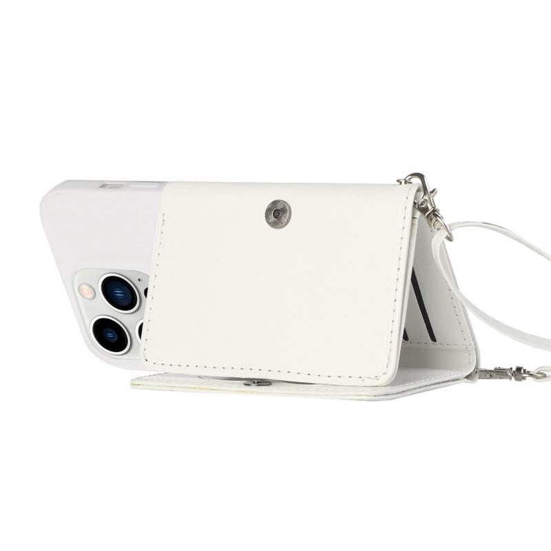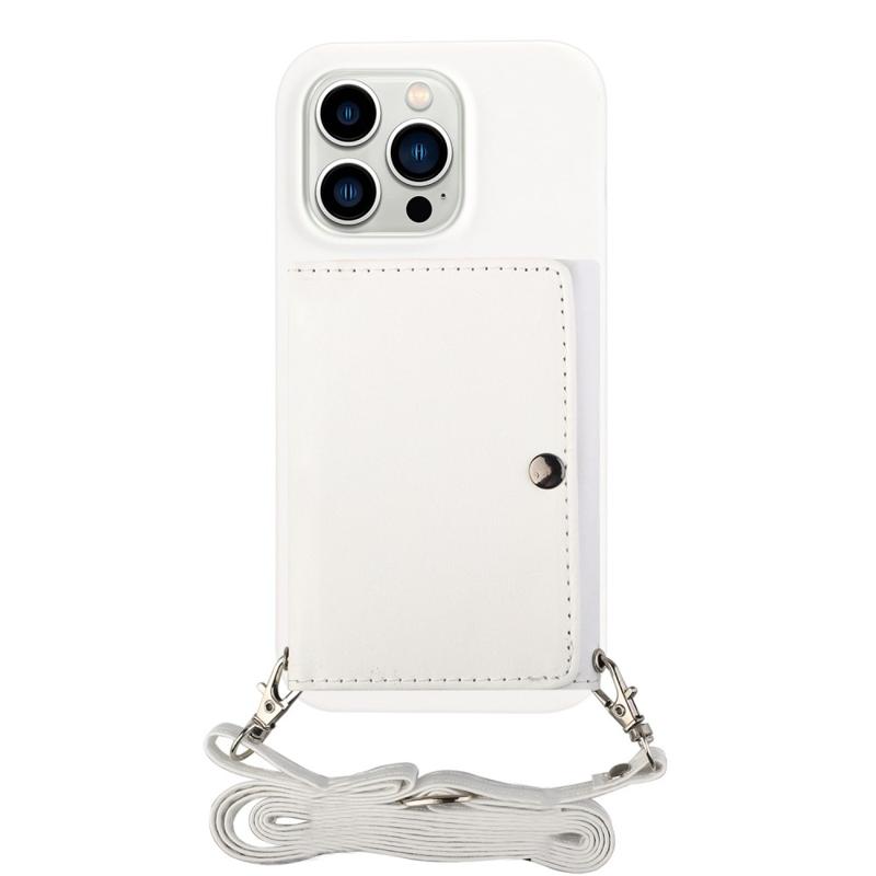 PU læder pung TPU etui til iPhone 14 Pro, Støttefod Anti-ridse telefoncover med skulderrem