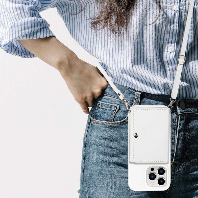 - Leveres med en lang skulderrem, bær din telefon bekvemt