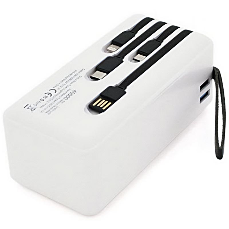 Hepu XL HP210 40000mAh Powerbank med indbyggede USB-C/Lightning/USB-A/MicroUSB-kabler – 15W Hurtigopladning