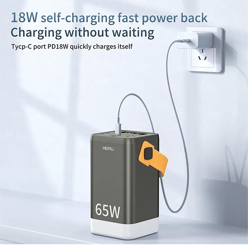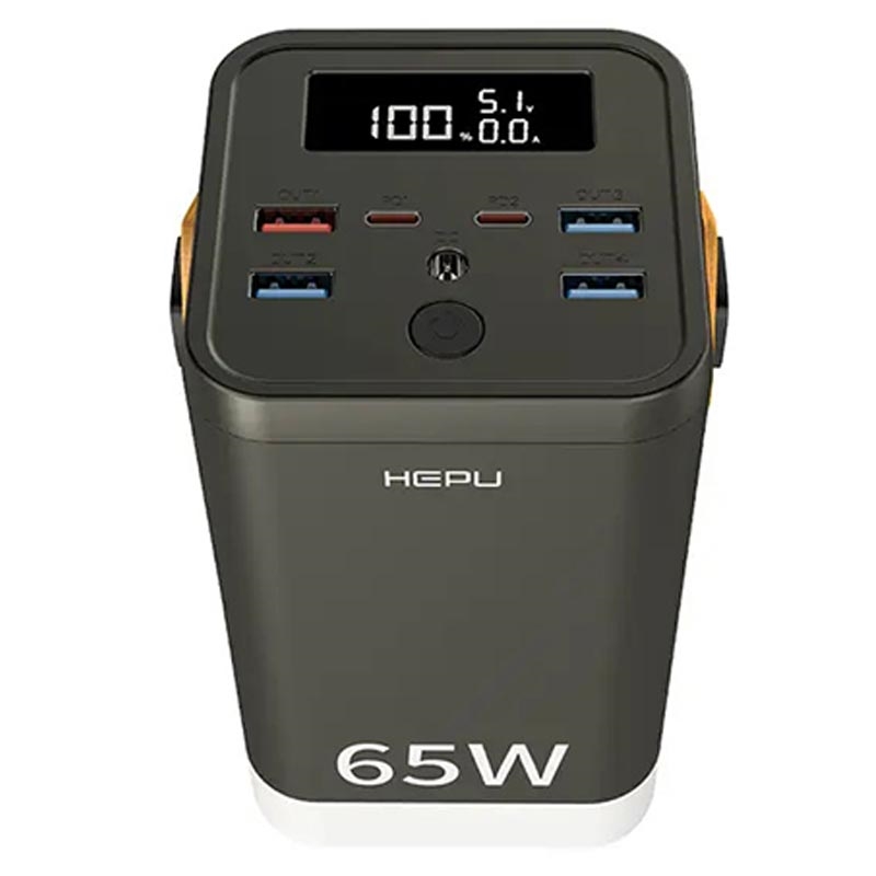 HEPU XXL HP211 er en massiv 60000 mAh powerbank designet til brugere, der har brug for flere opladningsporte og langvarig kapacitet. Med fire USB-A-porte, to USB-C PD-porte og en DC-port kan den forsyne flere enheder med strøm på én gang, herunder smartphones, tablets og mindre bærbare computere. Selv om den på papiret lover 65W hurtig opladning, er dens ydeevne bedst egnet til brugere, der prioriterer kapacitet frem for hastighed.