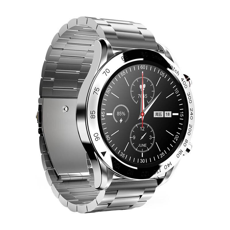 Hvis du sætter pris på elegance og kvalitet, er denne model lige noget for dig. Den elegante urkasse i rustfrit stål er modstandsdygtig over for dagligdagens prøvelser. Urskiven er kendetegnet ved en vandtæt klassificering på 3ATM, så den er også modstandsdygtig over for stænk og utilsigtet kontakt med vand. Enheden kan derfor ledsage dig i dine daglige aktiviteter uden at bekymre dig om skader. Dette er et solidt, eksklusivt smartwatch, der følger din rytme!