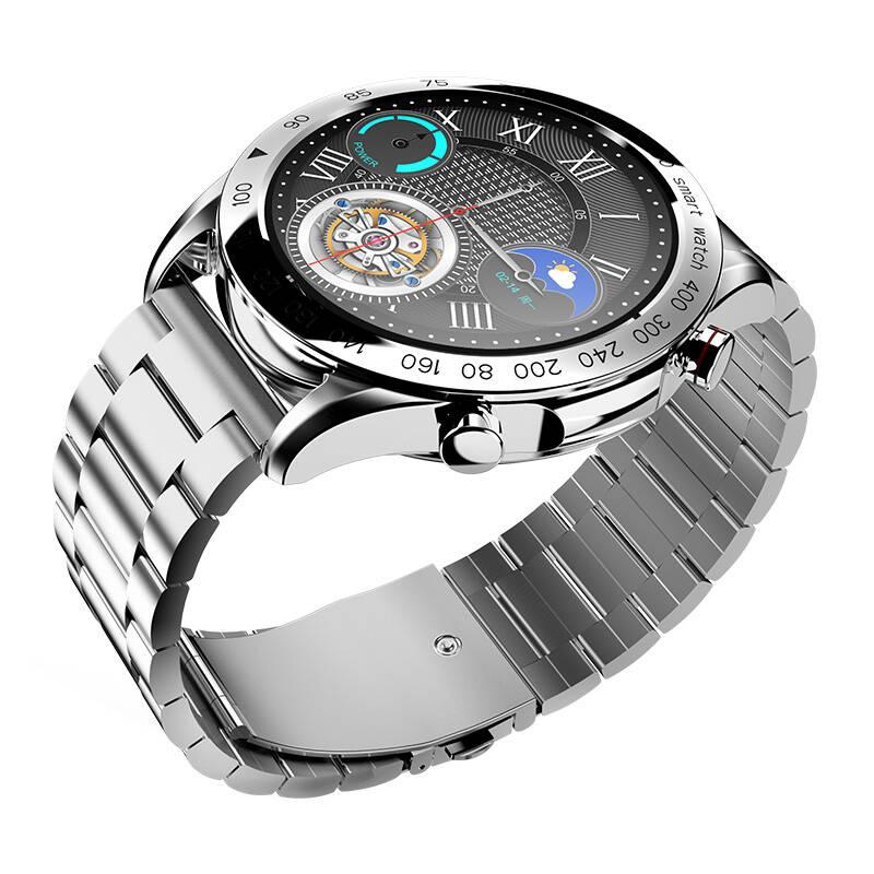 FutureGo Pro er indbegrebet af luksus. Smartwatchet er lavet af rustfrit stål og skiller sig ud med sin imponerende bærbarhed og sit elegante design. Denne model har en batterilevetid på op til 20 dage, hvor enheden kan overvåge kvaliteten af din søvn, din puls eller kvaliteten af din træning. Det giver dig mulighed for at modtage opkald, beskeder og notifikationer, alt sammen på en dejlig farverig skærm.