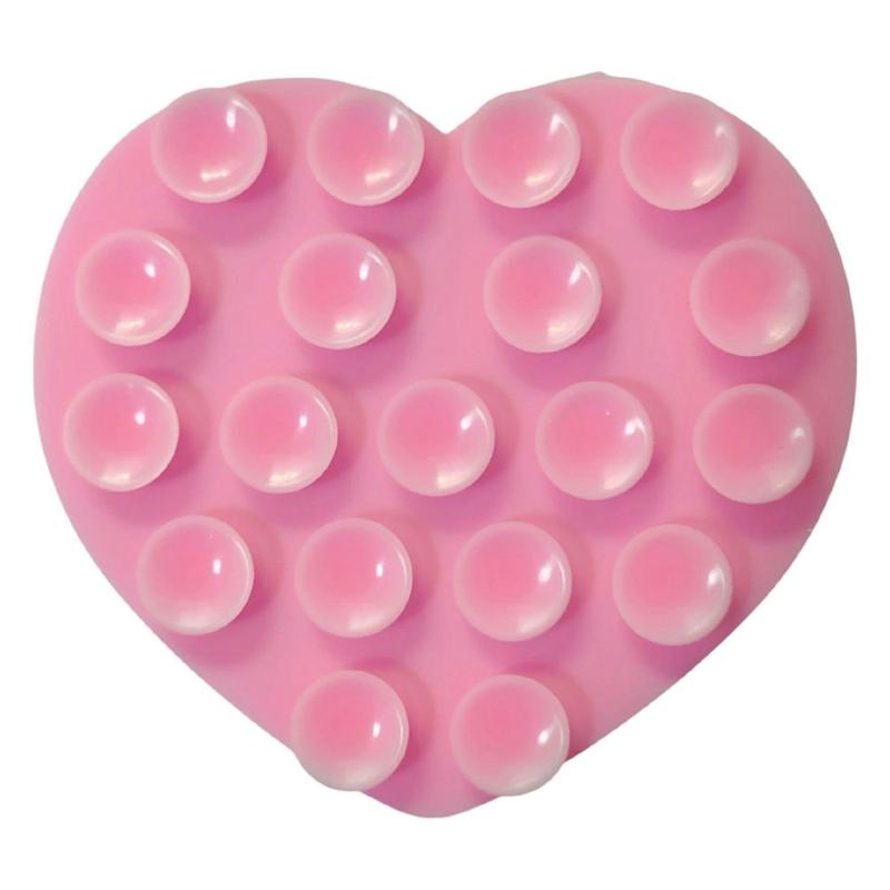 Hjerteformet dobbeltsidet silikone-sugekopholder til smartphones - håndfri holder med stærkt greb, 70 x 63 mm