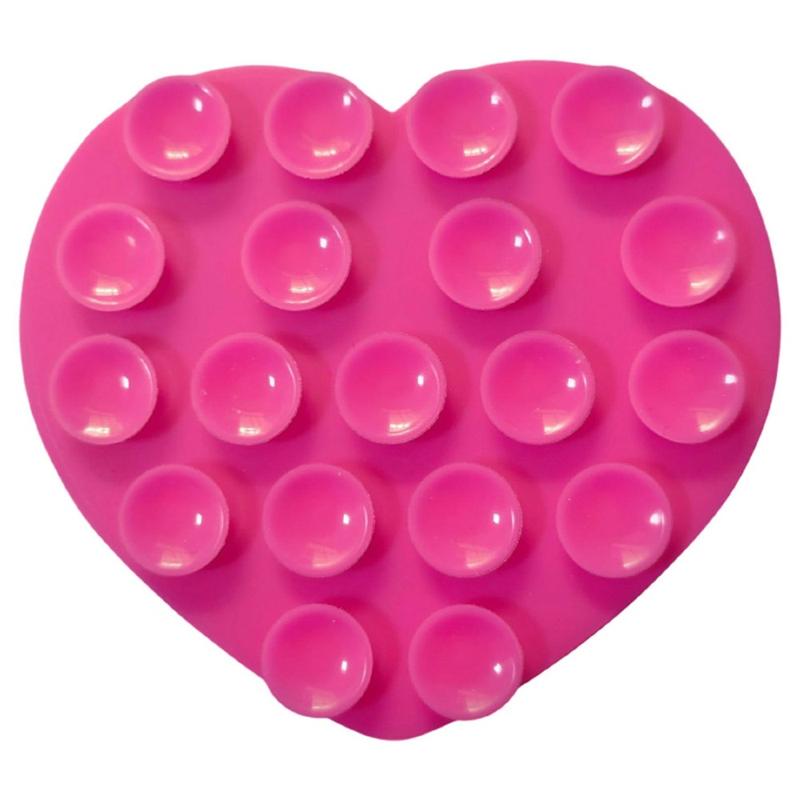 Hjerteformet selvklæbende silikone-sugekop-telefonholder - Hot Pink