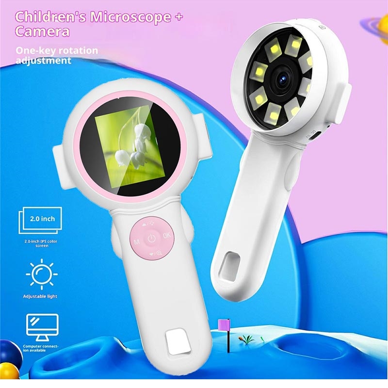 Den digitale lup HM020J til børn er et sjovt og lærerigt værktøj, der fremmer videnskabelig nysgerrighed. Med sit dobbeltfunktionsdesign, lyse IPS-skærm, justerbare belysning og pc-kompatibilitet er det det perfekte håndholdte mikroskop til børn, der udforsker verden helt tæt på.