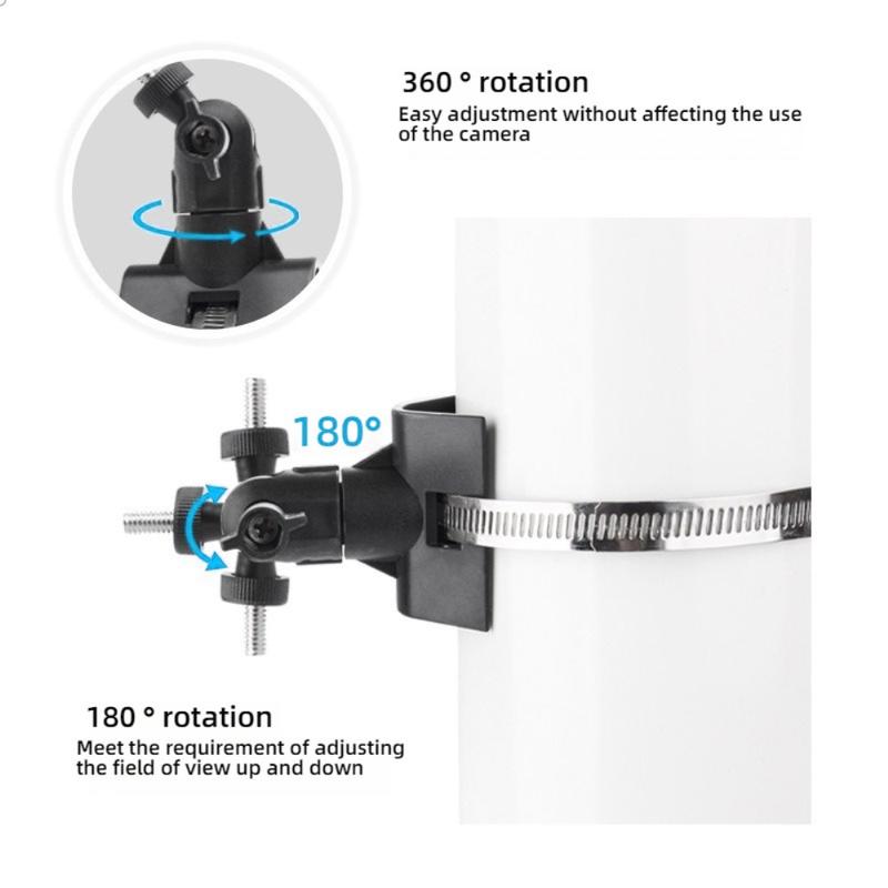 Dette beslag understøtter 360° vandret rotation og 180° lodret hældning, så du kan finjustere kameravinklen for at opnå maksimalt synsfelt. Det hjælper med at eliminere blinde vinkler og sikrer omfattende overvågning af målområdet.