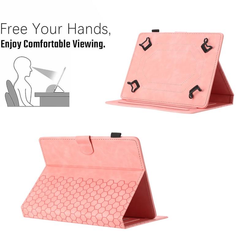 Honeycomb-mønstret universelt tablet-etui med kortholdere - 10" - Pink