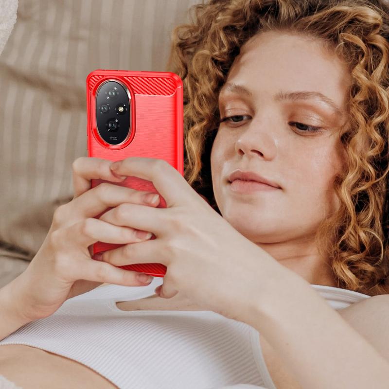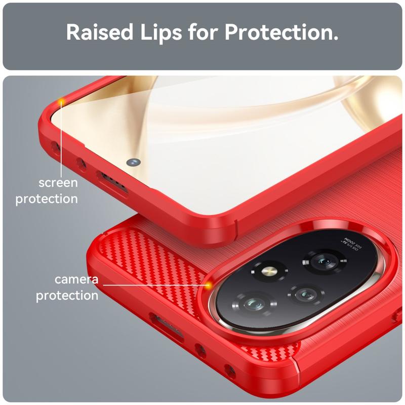 Honor 200 Pro Børstet TPU Cover - Karbonfiber - Rød
